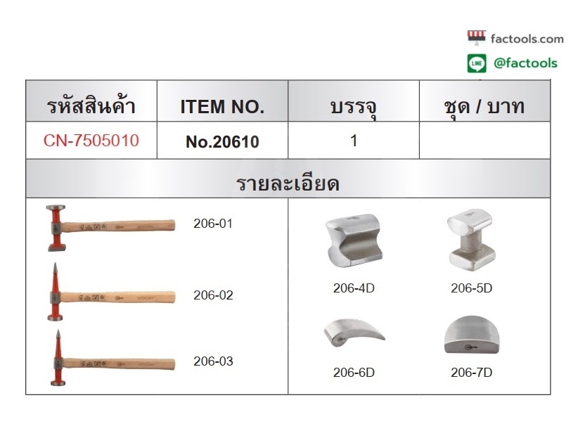 FACCN-7505010 ค้อนเคาะตัวถังด้ามไม้ Hickory pี่ห้อ CONSO รุ่น 20610 (7ตัว/ชุด)