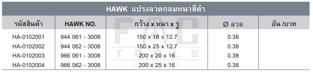 FACHA-0102001 แปรงลวดกลมหนาสีดำ HAWK ขนาด 150 x 18 x 12.7 #944-061-3008