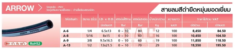 099-TOY-A0600000 สายลมสีดำยืดหยุ่นยอดเยี่ยม TOYOX A-6 1/4"(6.5x13) (100เมตร/ม้วน)