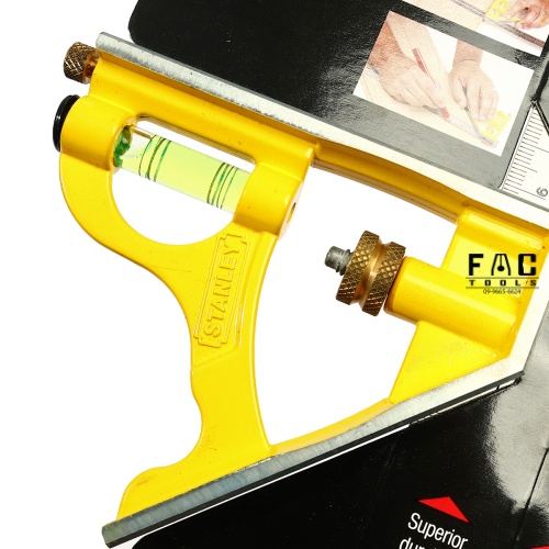ใบฉากผลิตจากสแตนเลส ไร้สนิม พิมพ์สเกลทั้งด้านหน้าและด้านหลัง ด้ามจับสามารถเลื่อน เข้า/ออก ได้และมี ระดับน้ำในตัว มีมุม 45องศา ไว้สำหรับวัดตัด เพื่อประกบเข้ามุม